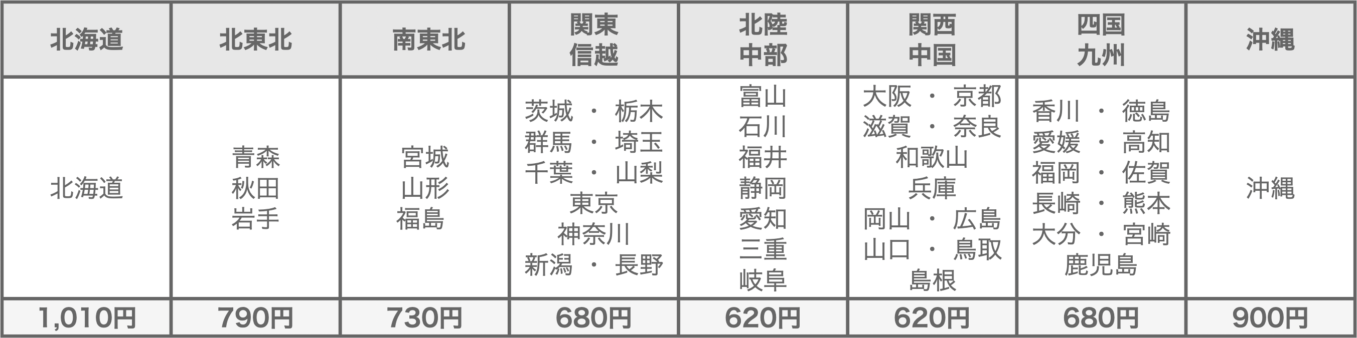 以上の場合は宅急便のお届けになり、送料が上記の宅急便料金に変更されます。